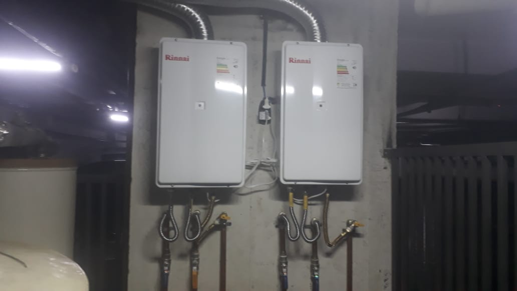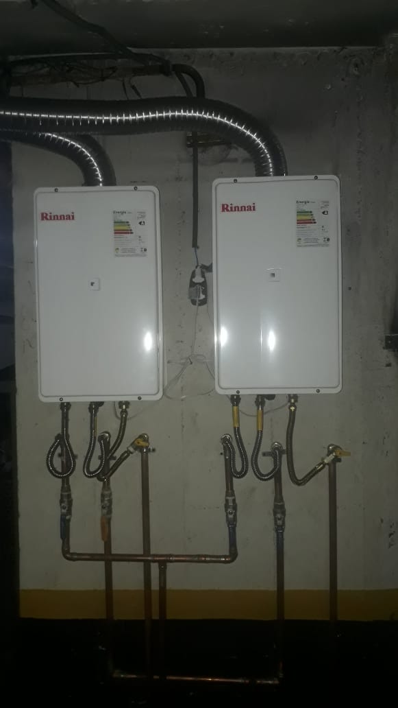 Aquecedores rinnai conjugado em uma caldeira central de 1000 litros